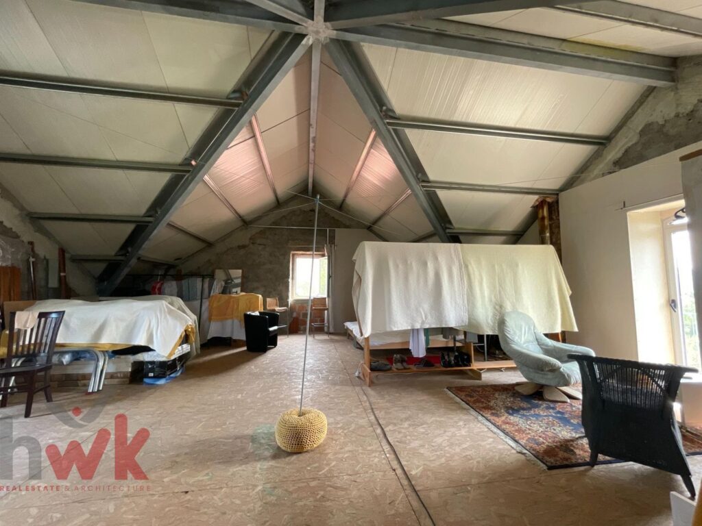 pré-installation pour cuisine. - Charpente entièrement rénovée en acier léger, panneaux sandwich avec isolation et tuiles.Extérieur :