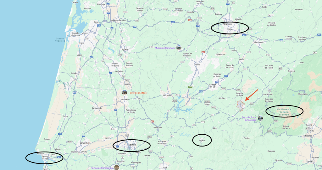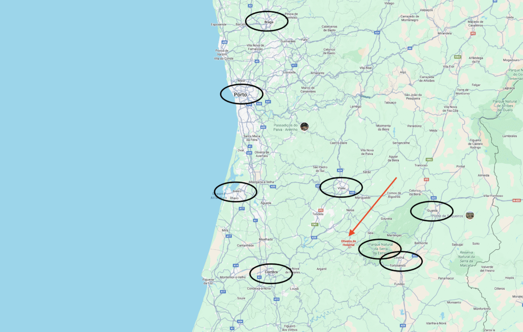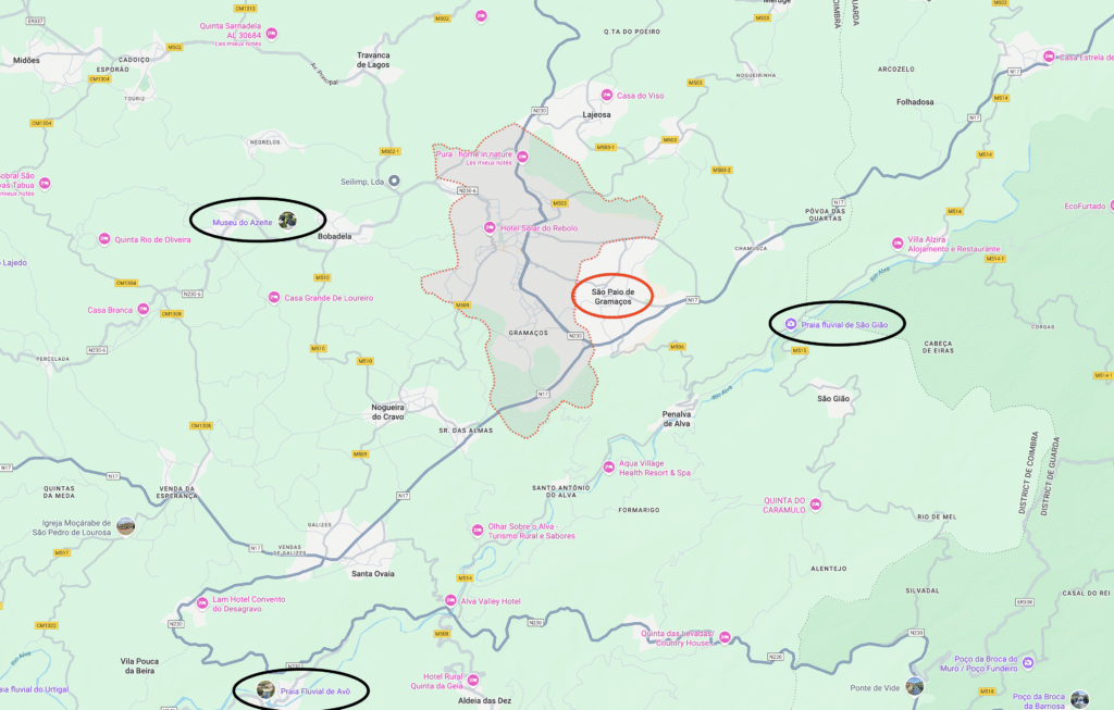À Oliveira do Hospital. Vous y trouverez : commerces, services et supermarchés ; hôpital, centre de santé et pharmacies ; banques, bureau de poste et écoles ; parcs de loisirs et activités diverses.