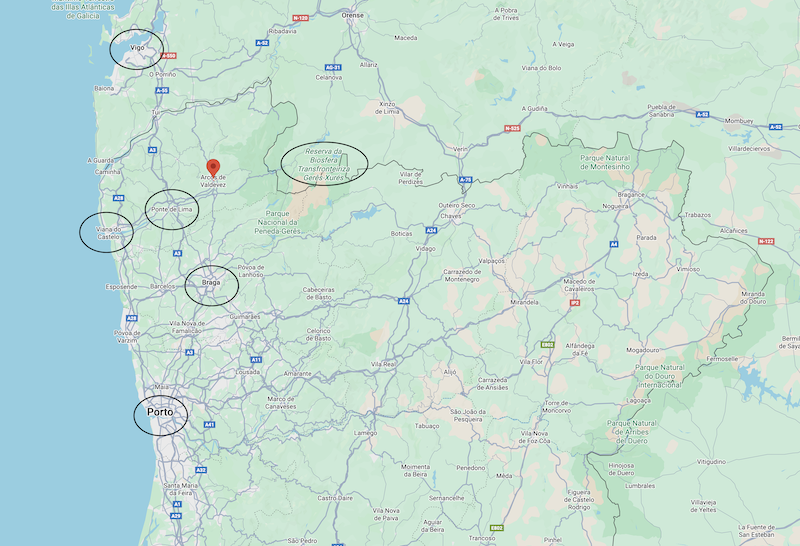 Elle est située dans le quartier paisible de Morilhões, à seulement quelques minutes du centre d’Arcos de Valdevez. Donc près du Portugal actif et près de l’Espagne de la Galice. Nous sommes là sur un des chemins de St Jacques de Compostelle.