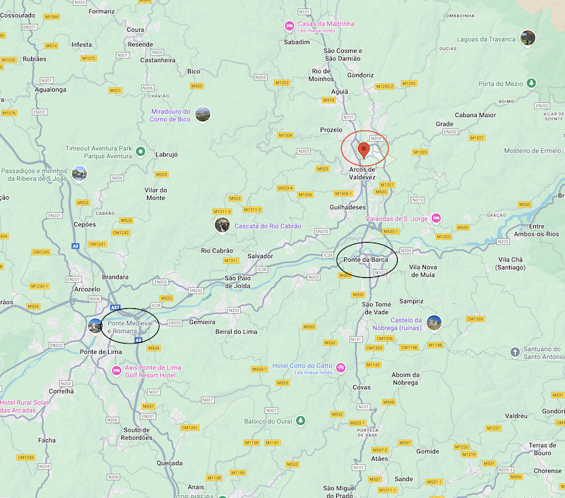 Ces maisons sont majoritairement au Nord Portugal qui est la région la plus active du Portugal. Il y a bien sûr de très belles maisons modernes près de Lisbonne ou Porto ou dans d’autres grandes villes mais bien plus chères. Ici nous sommes près de Ponte da Barca ou de Ponte de Lima, deux villes avec de très beaux ponts bien sûr. Ce sont des villes très anciennes avec ces ponts qui date de l’époque romaine. ce qui témoigne de l’intérêt à vivre dans ces régions très accueillantes et riches.