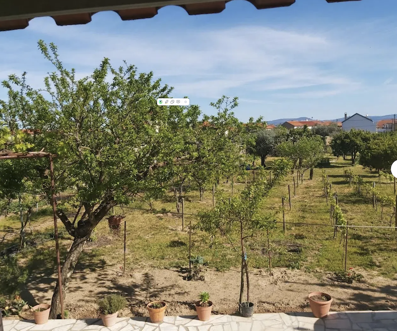 109 arbres fruitiers (orangers, citronniers, cerisiers, figuiers, pêchers, kiwis, etc.), 18 oliviers, vignes, potager, puits avec pompe neuve, forage en état, dépendance pour élevage, jardin fleuri à l’entrée.