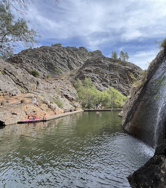 Praia Fluvial do Pego (Penha Garcia, ~40 km) : piscine naturelle au pied d’une cascade, dans un site géologique exceptionnel avec des fossiles de 480 millions d’années.